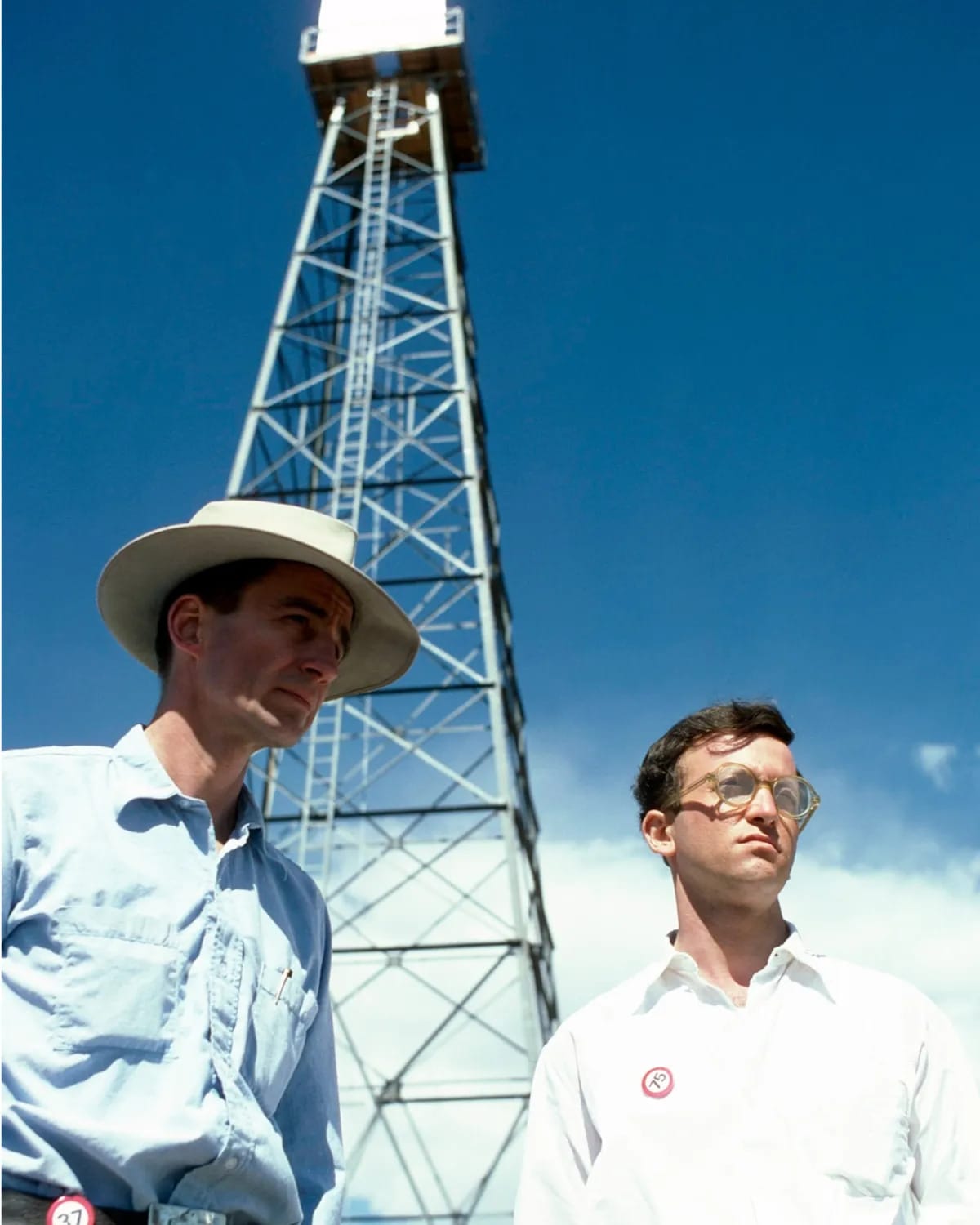 Wie sich also das Kollegium der Forscher bildet und zusammengezogen wird, also die Akquisitionsversuche, den Forscherkreis dazu zu bringen, sich in der Wüste von New Mexico in eine extra dafür neu gebaute Siedlung mit Familie zu versammeln und dort für die nächsten ein, zwei, drei Jahre voraussichtlich eben an dem Ding zu forschen, über das nicht geredet werden darf und was als kriegswichtiges Geheimprojekt klassifiziert war.