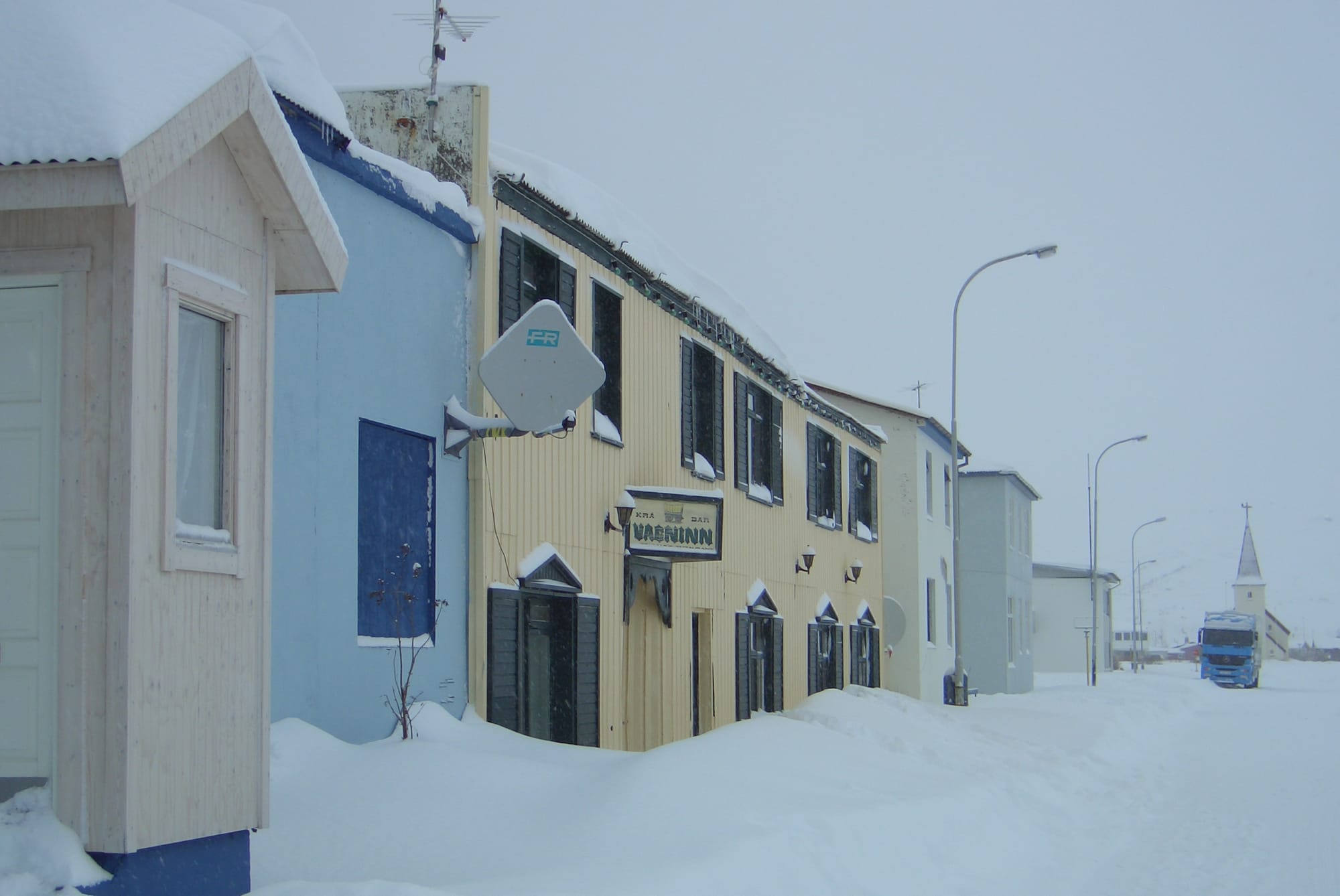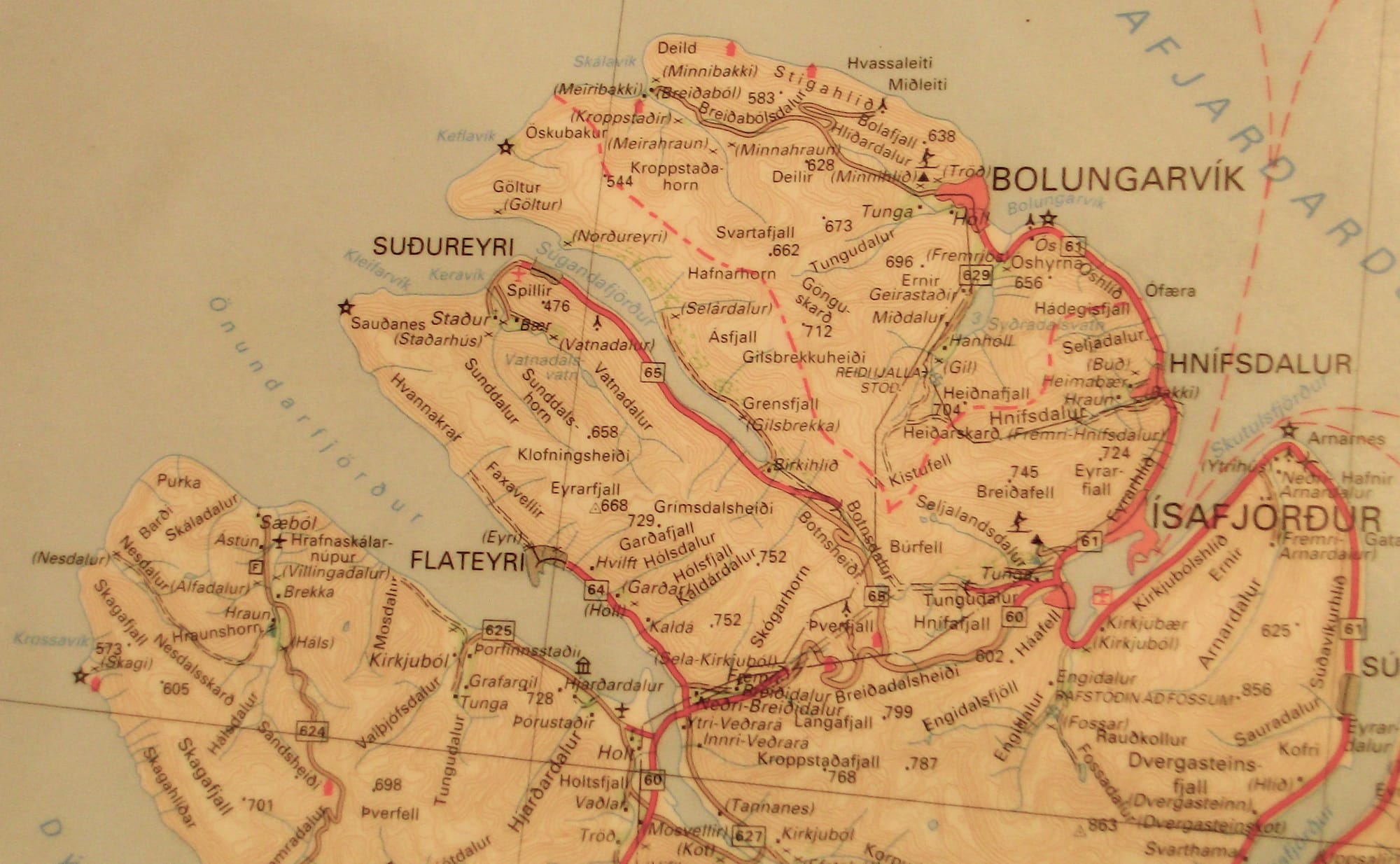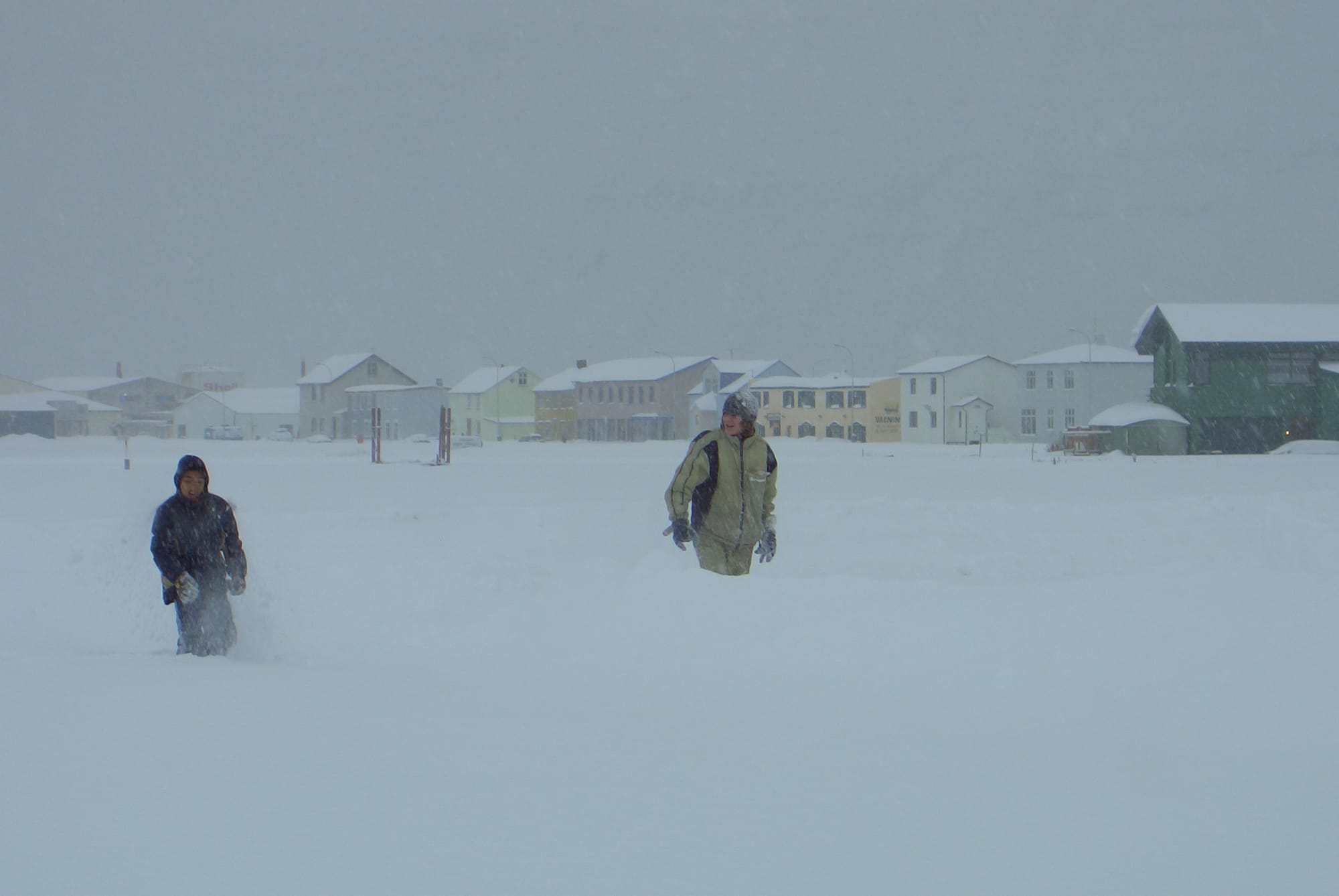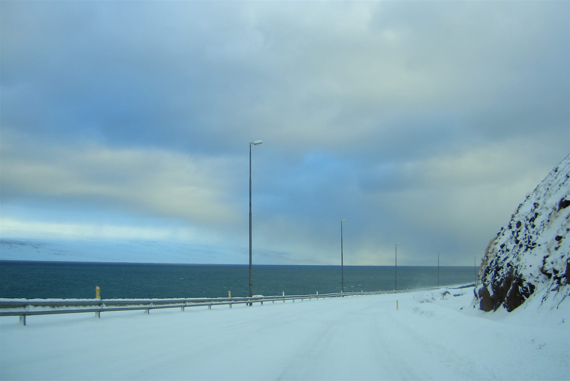 Ende Oktober 2005 machten Norbert Pintsch und ich uns auf den Weg nach Flateyri in den Westfjorden im Norden von Island. Wir mieteten uns bei einem international tätigen Mietwagenanbieter in Reykjavik für den Weg in den Norden ein Kraftfahrzeug. In Reykjavik war bereits die Wettervorhersage heraus, dass es einen Wetterumschwung geben würde, der sich dann als kräftiger, zu früher Wintereinbruch herausstellen würde. Der Mitarbeiter der Mietwagenagentur machte bei Anmietung den Eindruck, als dass dies sein zweiter oder dritter Parallel-Job sei: Die Lebenshaltungskosten in Island waren damals bereits schon exorbitant hoch. Auch schien mir diese Art von Arbeitsteilung in dem dünn besiedelten Staat notwendig, um die gesellschaftliche und ökonomische Komplexität aufrecht erhalten zu können. Die Gesamtbevölkerung auf Island beträgt rund 400.000 Einwohner. Das KFZ hatte jedenfalls Ende Oktober noch Sommerreifen aufgezogen. Der Wintersturm setzte am Abzweig der Ringstraße 1 bei Bifröst in den Vestfjarðavegur 60 ein. Die Gesamtstrecke Reykjavik – Flateryri misst zirka 480 Kilometer, normalerweise benötigt man knapp sechs Stunden Fahrzeit dafür. Wir waren dann etwa die doppelte Zeit unterwegs, bis tief in die Nacht hinein. Bei Erreichen der kurvenreichen, einsamen, wassernahen und dunklen Uferstraßen an den Westfjorden glich unsere Autofahrt dann mehr einer "Petersburger Schlittenfahrt". Bei Dunkelheit und ohne Fernsicht fühlte sich jede Kurvenfahrt um eine Fjordbucht wie "und noch eine" an; es wollte kein Ende nehmen. Norbert meinte zu mir, ich könne von diesem Erlebnis noch meinen Enkeln erzählen. Nun ja.