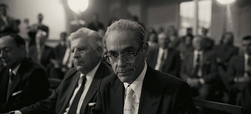 Und dann die Gegenspieler von Oppenheimer: General Leslie R. Groves, der sehr dämonisch von Matt Damon gespielt wird und auch sehr bedrohlich in seiner physischen Präsenz hier auftritt, – und auf der anderen Seite die Figur von Lewis Strauss, als verschlagenem Vorsitzenden der Atom-Energiekommission, gespielt von Robert Downey Jr., der Oppenheimer bei diesem Untersuchungsausschuss zur Sicherheitsfreigabe rauskickt, wie wir's in dem Kipphardt-Klingenbergschen Fernsehspiel in aller Ausführlichkeit schon dargestellt bekommen haben.
