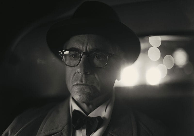In seiner Parallelmontage ist der Film eigentlich multiperspektivisch, weil wir einerseits die subjektive Wahrnehmung von Oppenheimer im IMAX-Format und in Farbe üppigst gezeigt bekommen. Auf der anderen Seite bricht der Film dramaturgisch nicht auseinander, weil die Schwarz-Weiß-Teile im 70-mm-Breitbild-Format die Welt von Lewis Strauss zeigen, der nicht verstehen kann, warum es jetzt in seiner Karriere mit seinem Schwarz-Weiß-Denken trotz breiter, vorausschauender Sicht nicht mehr vorangeht. Und diese doppelte Gegensatzführung einerseits mit der Militärleitung durch Leslie Groves, dem General aus der für Wissenschaftler sehr externen Welt des Militärs, von Matt Damon gespielt, und auf der anderen Seite der interne Widersacher im politischen Lager der Hierarchiekämpfe, Lewis Strauss, von Robert Downey Jr. gespielt: Das ist schon eine sehr dichte dramatische Darstellung mit allen Mitteln der Filmkunst, nicht wahr.